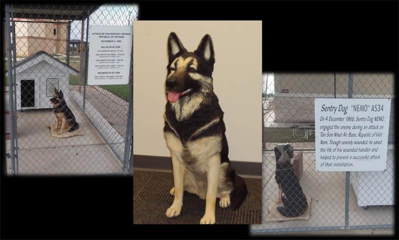 The statue was moved to the US Air Force Security Forces museum on Lackland AFB, San Antonio, Texas, USA after completion. They created an complete exhibit for 'Nemo' to appear as a standard War Dog kennel from the Vietnam Era. This included a covered shelter to keep the sun from fading the statue. It was a massive honor to restore this hero of Air Force past. Later I was thanked personnally by a society dedicated to remembering war dogs used in by the US Air Force. A couple years after the exhibit was completed, I was told the new base commander's wife drove by on an extremely hot day (above 100f/37c) and called the Security Forces to complain that a working dog had been left outside and wanted it taken care of immeditately. I can think of no greater compliment. |